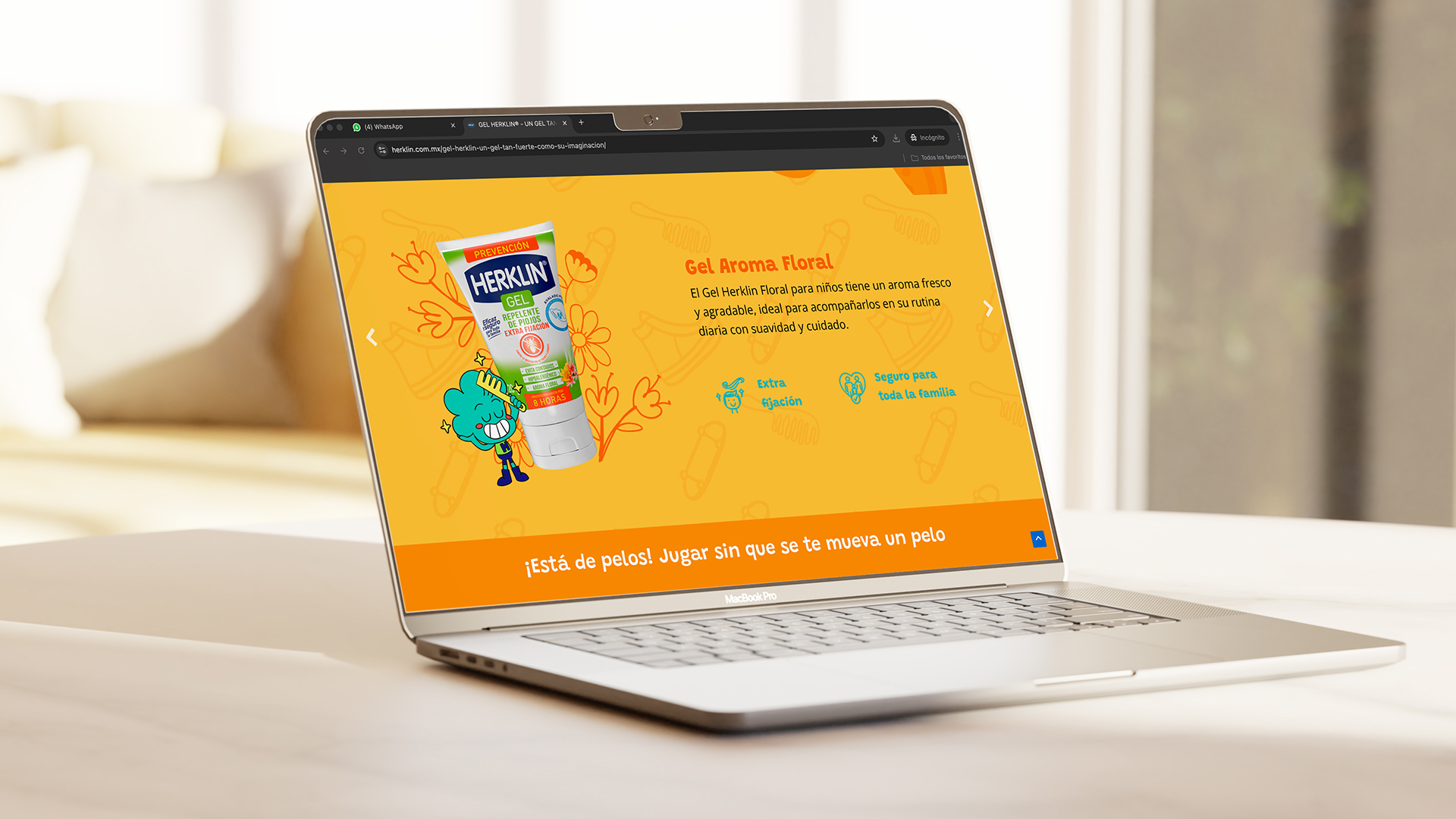 Es un gel para niños con extra fijación, te protege hasta por 8 horas de los piojos, seguro para toda la familia y está disponible en aroma floral y frutal. El equipo de marketing de la marca nos solicitó el desarrollo de un concepto creativo que conectará emocionalmente con padres y niños y esto se llevará a una landing page que recibiera a todos los interesados en conocer más del producto.
