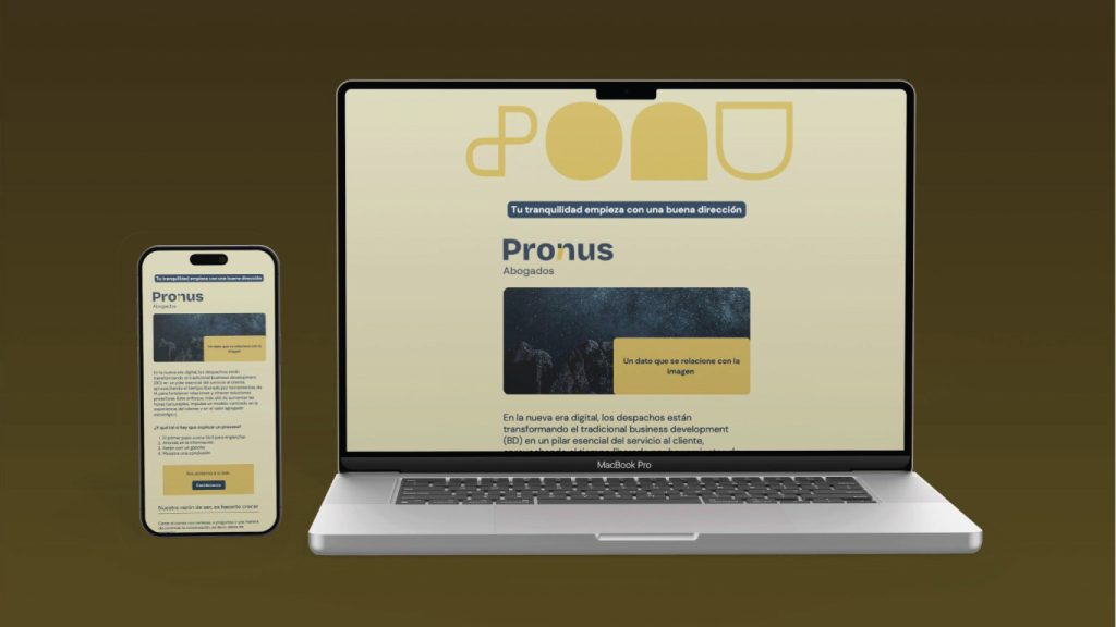 PRONUS es un despacho de derecho corporativo con sede en Puebla y presencia en toda la República Mexicana. Su misión es acompañar a las empresas en su crecimiento, ofreciendo seguridad, respaldo y guía en un entorno de negocios que a menudo puede generar incertidumbre al dar el siguiente paso. El reto consistió en crear una identidad visual y verbal que reflejara fortaleza, seguridad, compromiso, sabiduría y experiencia, sin perder cercanía ni frescura. Buscábamos una marca comprensiva y accesible, que se diferenciara claramente de la comunicación tradicional de las firmas legales.